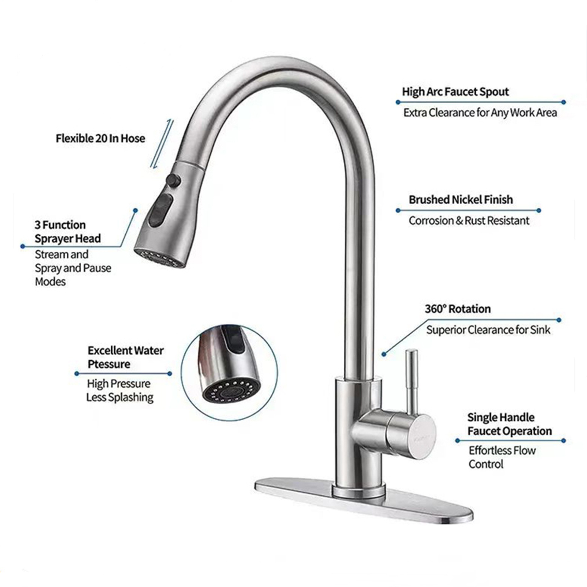 304 Stainless Steel Pull-Out Kitchen Faucet