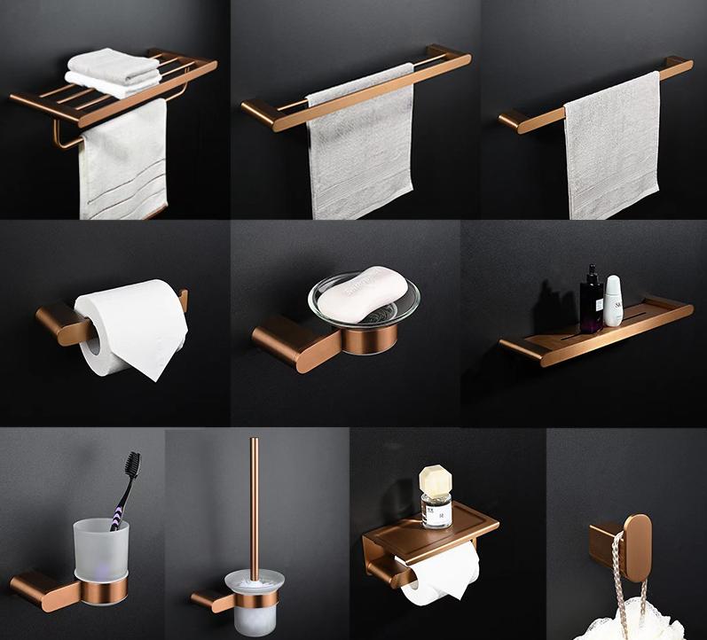 Perfect for modern homes, luxury hotels, and high-end commercial bathrooms, this rose gold bathroom accessory set adds a sophisticated and premium touch to any space!