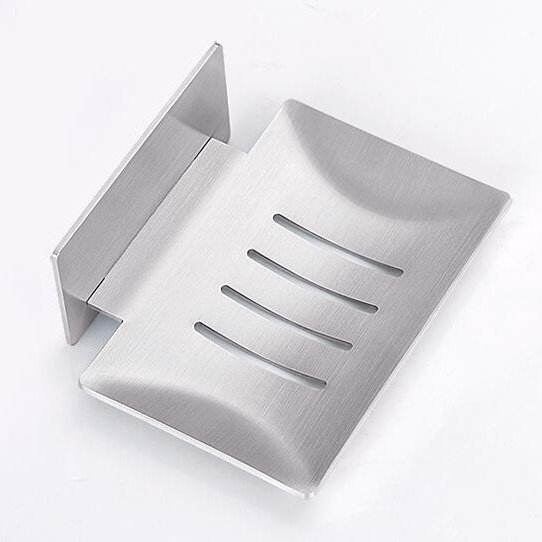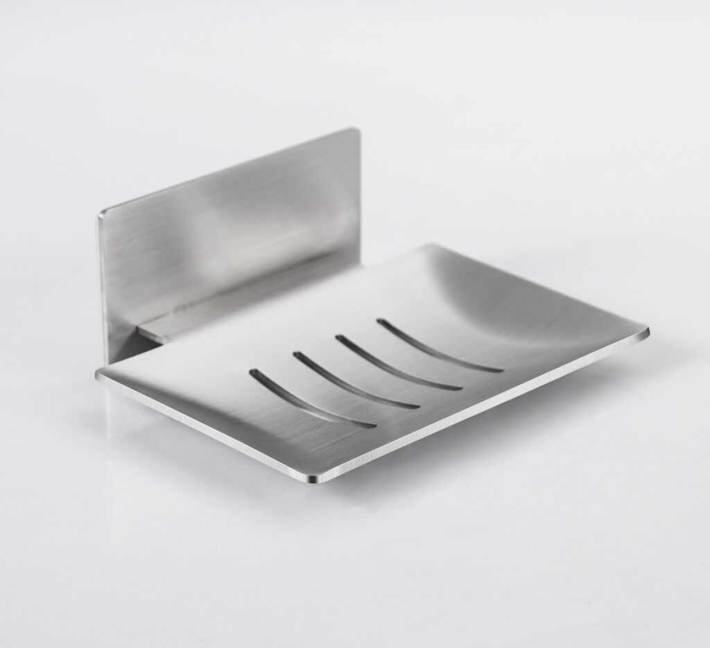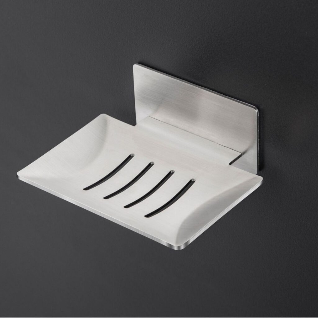 Stainless Steel No-Drill Soap Dish – Modern Shower Soap Holder with Drain Holes